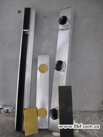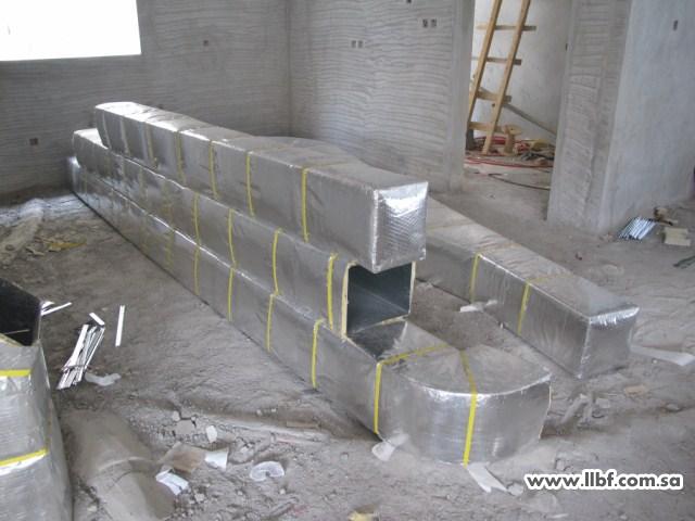 عند الانتهاء من أعمال اللياسة يتم توريد وتصنيع مجاري الهواء الدكت بالموقع مع ضرورة التقيد بالمواصفات المحددة في العقد من حيث نوعية وسماكة الصاج المستخدم وكذلك سماكة العزل ونوعيته على أن يكون العازل المستخدم داخل صناديق تجميع الهواء (البوكس) من النوعية الصحية والغير قابلة للتآكل |