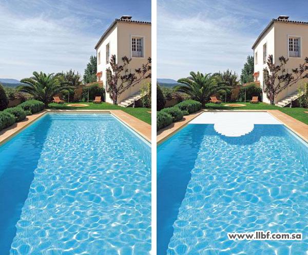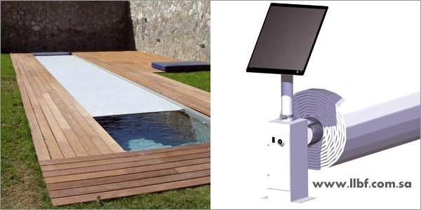 غطاء مسبح بنظام هيدروليك طريقه فتحه وقفله بمفتاح بحجم مفتاح السياره