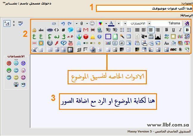بسم الله الرحمن الرحيم أعزائي أعضاء وزوار للبناء فنون السلام عليكم روحمة الله وبركاته في هذا الموضوع سنتناول خطوات طرح وإنشاء موضوع جديد متمنين للجميع الفائدة والنفع وفي حال وجود أي غموض أو عدم وضوح لبعض النقاط فنسعد جميعاً بمناقشتها و دعواتنا دائماً للجميع بالتوفيق لاضافة موضوع جديد: يجب أولاً أن يتم اختيار القسم الذي يتناسب مع محتوى الموضوع حسب الأقسام المتاحة بالموقع مثال ذلك: المخططات المعمارية يختص بمناقشة المخططات والأفكار المعمارية أعمال الهيكل الإنشائي (العظم) مخصص لطرح الأفكار وطرق التنفيذ لما يتعلق بمرحلة الهيكل الإنشائي ـ العظم أعمال التشطيبات مخصص لطرح الأفكار وطرق التنفيذ لما يتعلق بمرحلة التشطيب معرض الديكورات والأعمال الفنية مخصص لطرح صور الديكورات الداخلية والخارجية بمختلف أنواعها الاستشارات الهندسية مخصص لتقلي كافة الاستشارات والاستفسارات الخاصة بالبناء والتشييد سنشرح الان بالتفصيل كيفية اضافة وتنسيق النص + شرح اهم ادوات الموضوع اتبع الخطوات التالية: عند اختيارك للقسم الممناسب لطرح موضوعك اضغط على http://llbf.com.sa/vb/fnoon/buttons/newthread.gif تجدها في اعلى واسفل القسم بعدها سيفتح لك بوكس الموضوع لتضيف فيه نص الموضوع والصور كما هو موضح في الصوره اعلاه: 1 لاضافة عنوان الموضوع 2 ادوات تنسيق نص الموضوع 3 بوكس او المكان المخصص لاضافة النص او الرد ـــــــــــــــ لتنسيق النص بعد اضافته من حيث نوع الخط والحجم واللون هناك طريقتان: 1- اذا كنت تستخدم الصندوق الاحترافي كما سبق وشرحنا في الموضوع السابق (http://llbf.com.sa/vb/images/icons/icon1.gif شرح كيفية ارفاق صوره في الموضوع - شرح مصور ) قبل البدء في اضافة نص الموضوع قم بتنسيق النص من قائمة الادوات: اليك الشرح بالصور: هذه قائمة ادوات التنسيق تحتوي على الكثير من الايقونات http://www.llbf.com.sa/uploads/download.php?img=2041 لكننا الان سنشرح اهمها وهي: http://www.llbf.com.sa/uploads/download.php?img=2042:نوع الخط: عند الضغط على هذه الايقونه ستظهر لك قائمه لتختار منها نوع الخط لاحظ الصوره التاليه لانواع الخط http://www.llbf.com.sa/uploads/download.php?img=2051 ـــــــــــــــ http://www.llbf.com.sa/uploads/download.php?img=2043:حجم الخط: عند الضغط على هذه الايقونه ستظهر لك قائمه لاحجام الخط اختر منها مايناسبك http://www.llbf.com.sa/uploads/download.php?img=2052 ـــــــــــــــ http://www.llbf.com.sa/uploads/download.php?img=2045:لون الخط: تظهر لك هذه القائمه لاختيار لون الخط http://www.llbf.com.sa/uploads/download.php?img=2053 ـــــــــــــــ http://www.llbf.com.sa/uploads/download.php?img=2046:سماكة الخط: هذه الايقونه لزيادة سماكة الخط عند الضغط عليها http://www.llbf.com.sa/uploads/download.php?img=2048:لاضافة خط تحت كلمه او جمله ـــــــــــــــ http://www.llbf.com.sa/uploads/download.php?img=2049:لتحديد جهة النص:ظلل النص او جمله واختر جهة النص يمين-وسط-يسار ـــــــــــــــ http://www.llbf.com.sa/uploads/download.php?img=2050:لوضع ارقام متسلسله او نقاط لرأس الموضوع: اضغط على ايقونة الارقام سيظهر اول رقم 1 وعند الانتهاء من كتابة سطر اضغط انتر ستلاحظ رقم 2 في بداية السطر الثاني وهكذا في كل مره تنتهي من كتابة السطر وتضغط انتر واذا اردت وضع نقطه في بداية الجمله اختر الايقونه التي تتلو ايقونة الارقام واتبع نفس الطريقه السابقه http://www.llbf.com.sa/uploads/download.php?img=2054 ـــــــــــــــ http://www.llbf.com.sa/uploads/download.php?img=2056:ايقونه لاضافة رابط لكلمه او جمله او صوره ظلل النص او الكلمه المراد وضع رابط لها ثم اضغط على ايقونة الرابط،،ستفتح معك نافذه صغيره لتلصق بها الرابط لاحظ الصوره التاليه: http://www.llbf.com.sa/uploads/download.php?img=2057 بعد وضع الرابط في المكان المخصص له اضغط على OK لتتحول الجمله او الكلمه الى رابط http://www.llbf.com.sa/uploads/download.php?img=2058 لاضافة رابط الى صوره: اضف الصوره ثم اضغط عليها ثم اتبع الخطوات السابقه بالضغط على ايقونة الرابط ـــــــــــــــ http://www.llbf.com.sa/uploads/download.php?img=2047:هذه الايقونه تراجع عن كل عمليات التنسيق من حيث حجم الخط او لونه او نوعه فقط ضلل ماتريد الغاءه سواء كانت كلمه او جمله ثم اضغط هذه الايقونه ــــــــــ