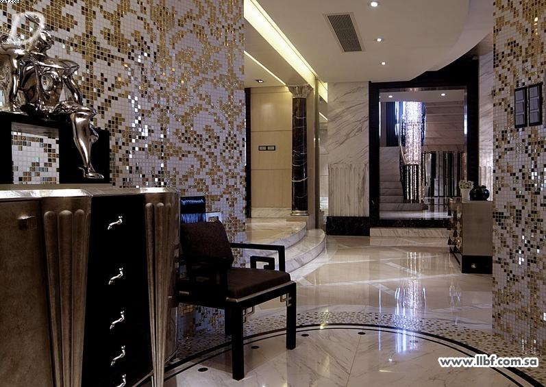 المدخل الثالث ابدعت شركة بيسازا و هي شركة ايطالية رائدة في الموزاييك في خلق تصاميم رائعة تواكب خطوط الموضة و نرى في هذا المدخل اكساء لجدرانه بموازييك من بيسازا بروح الباروك مدخل او موزع بخطوط منحنية و نلاحظ جدار المدخل من الموزاييك الذهبي و الأبيض في تباين رائع مع قطعة الكونسول السوداء الفاخرة...جدار يشد النظر حقا....الإضاءة المخفية الصفراء ساهمت في ابراز جمال الموزاييك و نلاحظ البساطة الراقية في تصميم الأرضية و الأسقف http://www.llbf.com.sa/uploads/download.php?img=763 نلاحظ الإختلاف في تصميم ارضية الموزع عن المنطقة المحاذية تاكيدا على الإنتقال لمنطقة اخرى مع المحافظة على النسق اللوني http://www.llbf.com.sa/uploads/download.php?img=764 |
