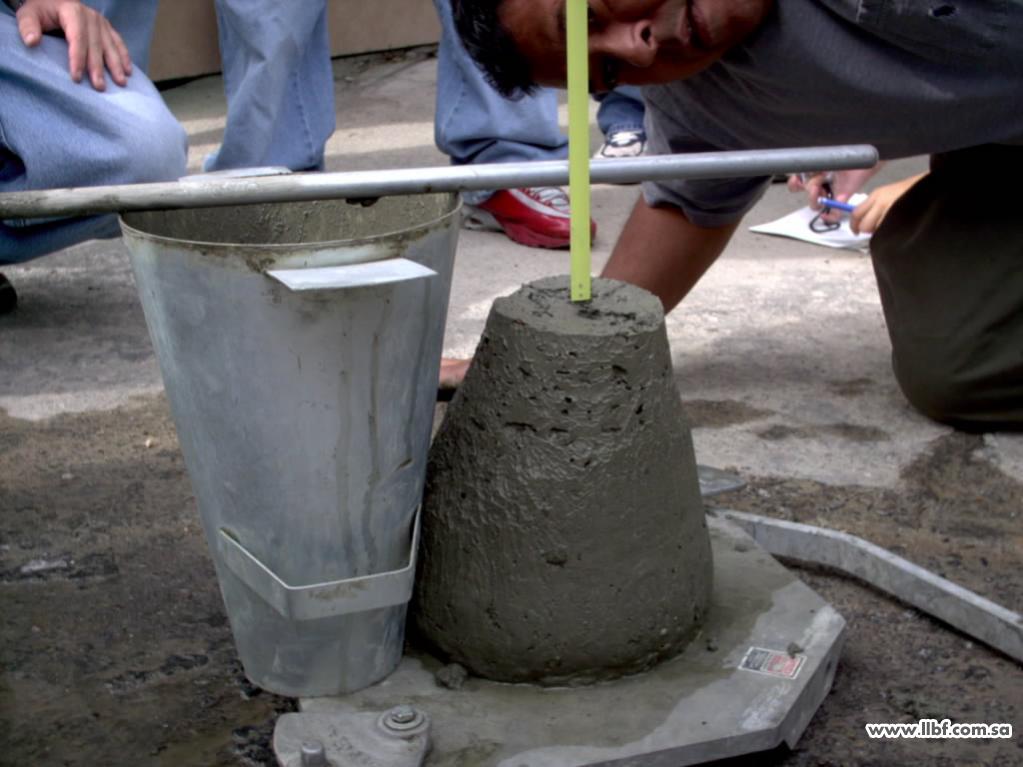 السلام عليكم لها اختباران واحد في الموقع عن طريق slumptest1 والثاني عن طريق المكعبات في المختبر