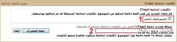 الكلمات الدلاليه (Tags) • تعريف الكلمات الدلاليه وما هي فائدتها؟ وكيفية اضافتها؟ كثير من الاعضاء لايعلم بمدى اهمية هذه الكلمات الدلاليه معنى الكلمه الدلاليه (Tags) هي عنوان موضوعك ووصف لمحتواه ليسهل على الزوار والاعضاء عملية البحث داخل المنتدى ومن خلال محركات البحث واهمها محرك البحث Google وايضا ح يزيد عدد الزوار وبالتالي الاعضاء في نقاط مهمه كثير تجعل اي موقع في الصداره وفي اولى صفحات محركات البحث اهم هذه النقاط هي: - عنوان الموضوع: كل ماكان عنوان الموضوع مميز وقوي كل ماجذب كثير من الاعضاء والزوار هناك اخطاء يقع فيها الكثير من الاعضاء تؤثر على عملية البحث داخل المنتدى وخارجه عن طريق محركات البحث اهمها: • وضع رموز او علامات لتزيين عنوان الموضوع مثال: « O0o اسقف جبسيه o0O - (¯`·._.·( اصباغ دهان وورق جدران)·._.·°¯) - ®ارضيات للمرات والحدائق® » الى اخره • المد وهو مد الحرف بخط مثال: فــلل وقـــصور فـــخمه ،، الافضل تكون فلل وقصور فخمه • يجب ان يكون العنوان واضح ويدل على محتوى موضوعك من الخطأ ان تكتب عنوان بهذا الشكل: ادخل وماراح تندم ،، ادخل ودعيلي ،، ارضيات على كيف كيفك ،، تعال وشوف الفخامه ،، الى اخره ادخل وماراح تندم! ماهو محتوى الموضوع ؟ اذا كان عن الاصباغ مثلا يكون افضل لو كتبت اصباغ رائعه لكل ركن من زاوية بيتك • تكرار الكلمه ايضا يضعف عملية البحث مثال: موضوع يشمل روابط مواضيع عن الدرج ،، وهذا ايضا خطا الصح هو: موضوع يشمل روابط مهمه عن الدرج • الكلمات الدلاليه: نقطه مهمه كثير والكثير يتجاهلها لعدم معرفته باهميتها ،، ماهي هذه الكلمات ومافائدتها؟ الكلمات الدلاليه هي وصف لمحتوى موضوعك لمحركات البحث فعندما يبحث الزائر في محركات البحث عن كلمه معينه سيظهر له موضوعك لانه يحمل نفس الكلمه مثال: عنوان موضوعك: ديكورات جبسيه وخشبيه للاسقف والجدران في اسفل الموضوع في الخانه المخصصه للدلاليه اكتب بهذا الشكل: ديكورات،جبسيه،خشبيه،اسقف،جدران (لاحظ الفاصله بين كل كلمه مهمه كثير) لو بحث الزائر عن كلمة جبس مثلا ح يطلع له موضوعك لانه يحتوي على كلمة جبس ولو بحث زائر اخر عن اسقف ح يطلع له نفس الموضوع لانه يحتوي على كلمة اسقف يعني العنوان شمل خمس مواضيع بوقت واحد - محتوى الموضوع: كل ماكان الموضوع جديد ومميز ح يزيد عدد الزوار والتفاعل من قبل الاعضاء - المواضيع المنقوله: هذه المواضيع تكون مكرره بشكل كبير ،، لكن بفكره بسيطه ممكن تجعل من المواضيع المنقوله مواضيع مميزه مثال: اردت ان اعمل موضوع عن المطابخ المفتوحه اكيد ح كتب في Google: مطابخ مفتوحه 2010 راح يطلع لي مواقع ومنتديات حتى مدونات كثيره الافضل اختار منها افضل الصور واجددها واجمعها في موضوع واحد واغير العنوان بحيث يكون جذاب ومش ممل ومش مكرر ويدل على محتوى الموضوع بشكل راقي - الموضوع اللي يحتوي على صور فقط من غير شرح: هذا ايضا يضر في عملية البحث لان كل المحركات تبحث عن دالاله نصيه للمحتوى فالافضل اضافة شرح للموضوع لان اي محرك بحث لايستطيع أرشفة اي موضوع يحتوي على صور فقط كيفية اضافتها: عند انشائك لموضوع تظهر في اسفل البوكس ( مربع النص ) كما في الصوره التاليه: http://www.llbf.com.sa/uploads/download.php?img=2110 اما اذا كان الموضوع نزل مسبقا يمكنك اضافتها ،، تابع الصور http://www.llbf.com.sa/uploads/download.php?img=2251 في اخر الصفحه لاحظ رقم 1 لايوجد كلمات دلاليه ،، على نفس السطر على اليسار لاحظ جملة تعديل الكلمات الدلاليه رقم 2 اضغط على تعديل الكلمات الدلاليه ليفتح لك مستطيل اكتب به الكلمات ثم اضغط على حفظ التغييرات ،، لاحظ الصوره التاليه: http://www.llbf.com.sa/uploads/download.php?img=2252 اذا كانت الكلمات طويله سوف تظهر لك هذه الرساله : http://www.llbf.com.sa/uploads/download.php?img=2253 اضغط OK ثم اعد الخطوه السابقه بالضغط على تعديل الدلاليه ثم اكتب ثلاث كلمات في المستطيل 2 ولا تنسى ان تفصل بينهم بفاصله ثم اضغط حفظ التغييرات ،، لاحظ الصوره http://www.llbf.com.sa/uploads/download.php?img=2254 بعد ان اعدنا نفس الخطوه السابقه ستظهر لك الكلمات بهذا الشكل: http://www.llbf.com.s