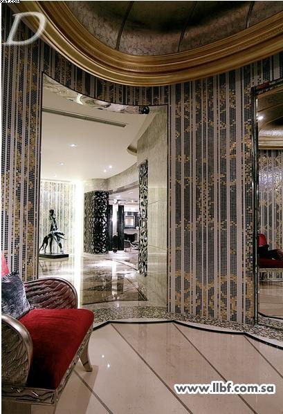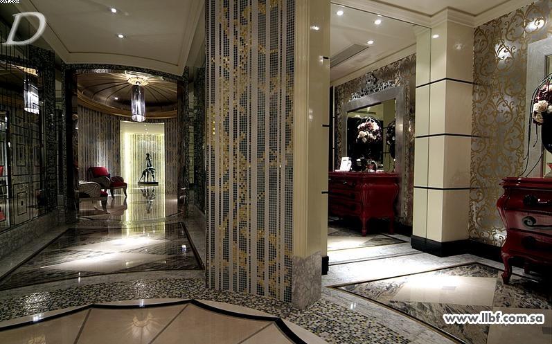المدخل الثالث ابدعت شركة بيسازا و هي شركة ايطالية رائدة في الموزاييك في خلق تصاميم رائعة تواكب خطوط الموضة و نرى في هذا المدخل اكساء لجدرانه بموازييك من بيسازا بروح الباروك مدخل او موزع بخطوط منحنية و نلاحظ جدار المدخل من الموزاييك الذهبي و الأبيض في تباين رائع مع قطعة الكونسول السوداء الفاخرة...جدار يشد النظر حقا....الإضاءة المخفية الصفراء ساهمت في ابراز جمال الموزاييك و نلاحظ البساطة الراقية في تصميم الأرضية و الأسقف http://www.llbf.com.sa/uploads/download.php?img=763 نلاحظ الإختلاف في تصميم ارضية الموزع عن المنطقة المحاذية تاكيدا على الإنتقال لمنطقة اخرى مع المحافظة على النسق اللوني http://www.llbf.com.sa/uploads/download.php?img=764 |