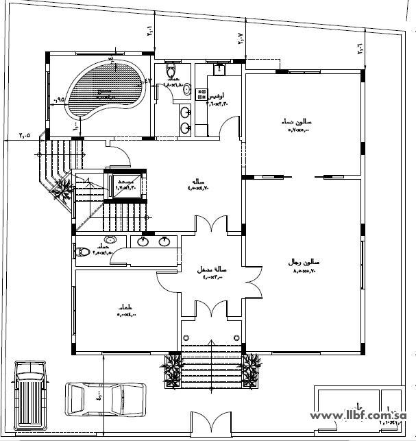 هلا بك أخي الكريم بالتوفيق أن شاء الله يتضح بأن المطبخ الرئيسي سيكون بالدور الأول! إليس كذلك مدخل النساء سيكون أعلاه مباشرة الدرج الرئيسي لذا يجب معرفة أرتفاع الدرج بدقة عن الباب قبل التنفيذ مجلس النساء بعيد عن المدخل وهذا يعني أن الضيوف سيطلعون على معظم أجزاء المنزل قبل الوصول لمجلس النساء مجلس الرجال مطل على مجلس النساء :):) هذا ما أخفيك بيكون مصدر إزعاج عندما يتواجد ضيوف من النساء والرجال في وقت واحد منطقة المسبح "تم أغتيالها" فلا جزء من المنزل يطل على المسبح!! غرفة الطعام موقعها غير منطقي!! من أين سيتم التخديم وإدخال الطعام وكذلك إخراج الأطعمة منها بعد أن يخرجوا الضيوف!!! هل يتم إخراج الطعام أمام الضيوف وكذلك عند إحضاره!! وهذا يعني أن المالك أو الأبناء هم من يقوم بالتحضير في "غرفة الطعام" لاستحالة وصول الزوجة أو البنات لها من أمام مجلس الرجال هذه بعض الملاحظات أتمنى أن أكون أضفت شيء مفيداً بالتوفيق |