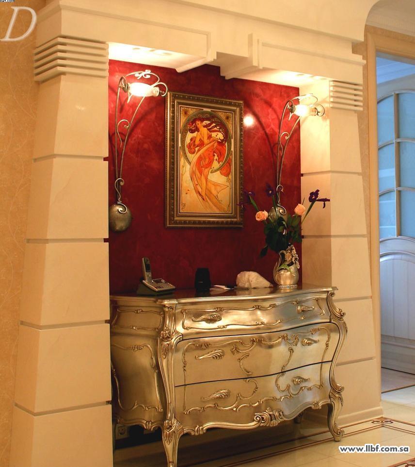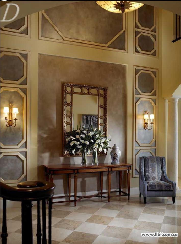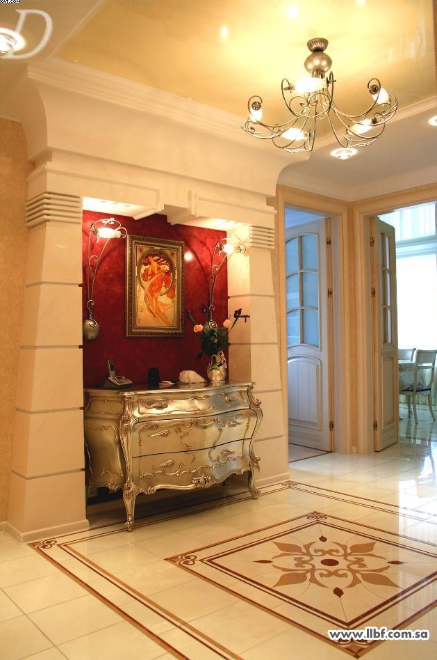 مدخل محدد باطار جبسي او اسمننتي او حجري لتحديد مكانه و تمميزه عن بقية الجدران و ليكون هذا الجدار هو الجدار الرئيسي او المحوري للشخص الداخل يشد النظر اليه و يجذبه و نلاحظ دهانه بدهان مختلف عن بقية الجدران نلاحظ الإنارة الجدارية من نفس عائلة و تصميم الثريا في المدخل.....واختيار لوحة جدارية تناسب لون جدار المدخل http://www.llbf.com.sa/uploads/download.php?img=2443 http://www.llbf.com.sa/uploads/download.php?img=2445 |