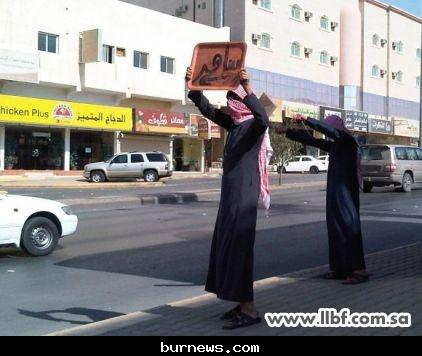 شباب يقفون لتنبيه السائقين من ساااهر حاملين لافته تحذيرية....خخخخ