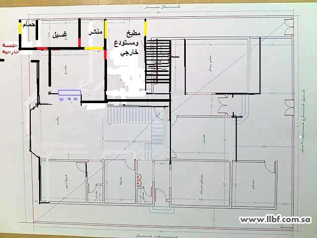 http://www.llbf.com.sa/uploads/download.php?img=4311 هلا بك المخطط جيد ويلبي حاجتكم،،، وجهة نظري أنه لم يبذل بالمخطط جهد كبير لتميزه واعتذر صراحة لوجهة نظري هذه لكن من باب الأمانة الطعام "المقلط" من الجيد أن يكون له باب سحاب من جهة مجلس الرجال ومن جهة الصالة تحت الدرج لأن منطقة تحت الدرج ستكون مرتفعة وتسمح بأن يكون الباب سحاب وبمساحة جيدة الأستاذة أديم نبهت لأمر مهم وهو تهوية غرفة الغسيل ودورة المياه من الجيد توفر الإضاءة والتهوية الطبيعية ويمكن توفير تهوية صناعية باستخدام مراوح الشفط والإضاءة |