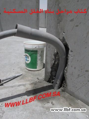 في حال وجود كيابل للكهرباء، أو أسلاك للستلايت (الدش) في وسط السطح، فهذه الأسلاك يجب أن يتم تحويلها إلى أقرب جدار وذلك بتمرير (الأسلاك، الكيابل) من خلال لي (جرجور) بعد ذلك يتم التكسير و وضعها داخل الجدار بارتفاع لا يقل عن 50 سم مع تركيب كوع فاتح |