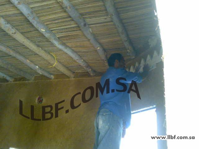عند الإنتهاء من بناء المدخنة، يتم عمل طرطشة لكامل المجلس بما في ذلك المدخنة، وبعد ذلك يتم عمل السقف بواسطة الجريد (سعف النخل) ومن ثم يوضع تحته مباشرة جذوع أشجار الأثل http://www.llbf.com.sa/uploads/download.php?img=223 بعد ذلك يتم عمل الطين بوضعه على الجدران باستثناء المدخنة وتكون طريقة العمل مثل اللياسة بواسطة الأيدي ويتم خلط الطين بالتبن أعزكم الله http://www.llbf.com.sa/uploads/download.php?img=224 http://www.llbf.com.sa/uploads/download.php?img=225 http://www.llbf.com.sa/uploads/download.php?img=226 http://www.llbf.com.sa/uploads/download.php?img=227 |