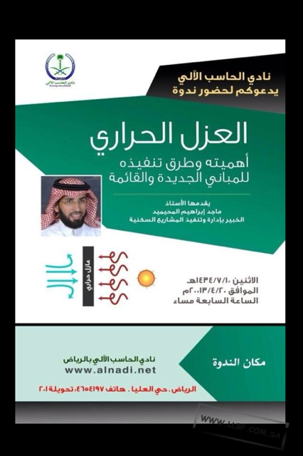 اليوم بمدينة الرياض ندوة: العزل الحراري أهميته وطرق تنفيذه للمباني الجديدة والقائمة