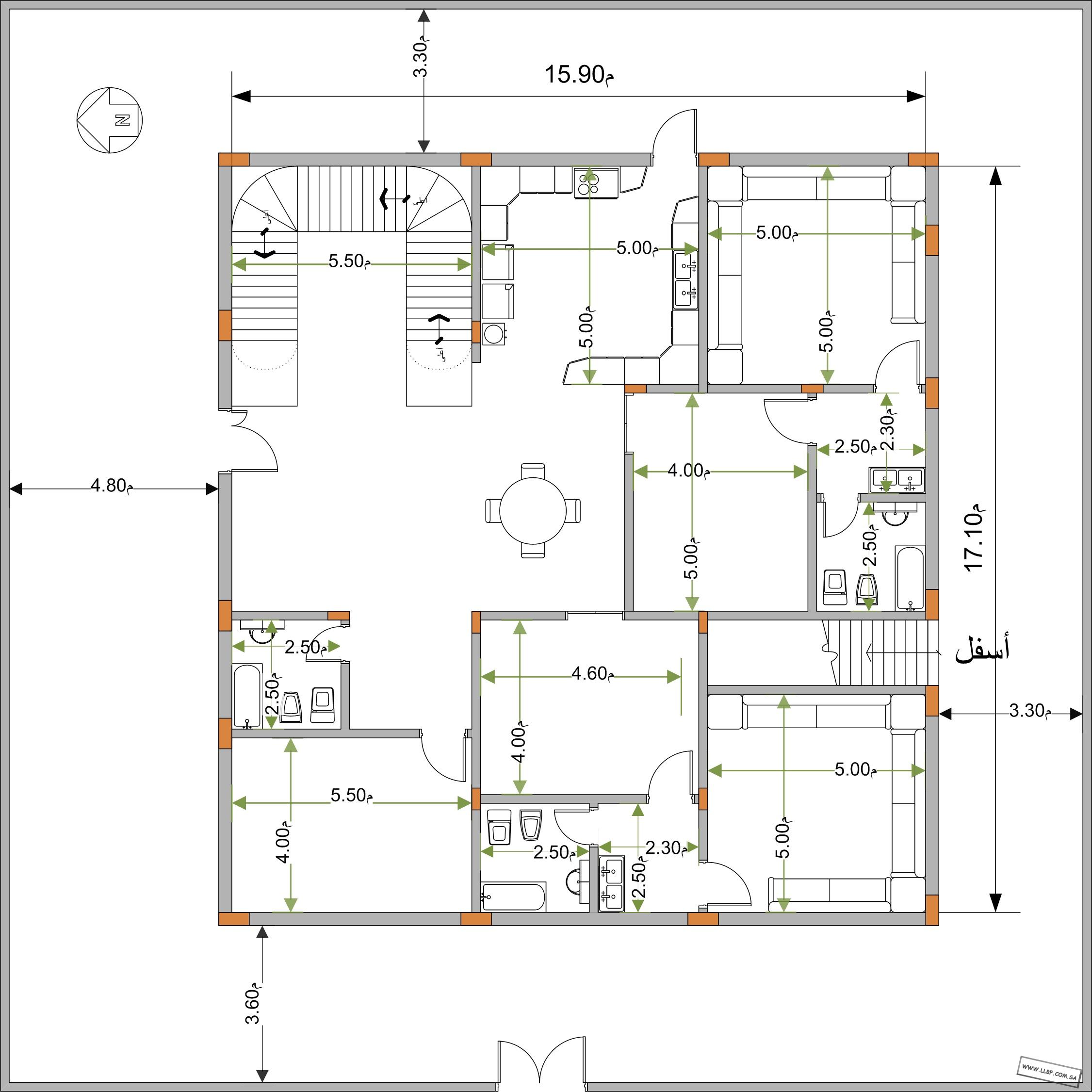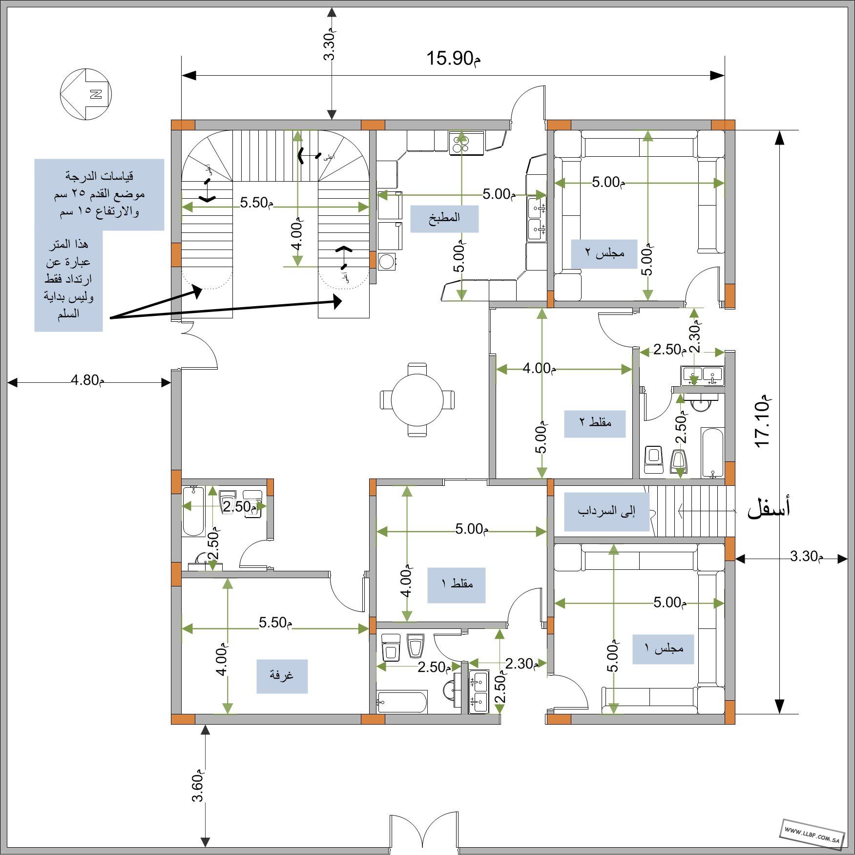 اختي الكريمه اسعد الله اوقاتك لدراسة المخطط لابد من ارفاق كامل المخطط من الارضي الي السطح . ملاحظتي المبدئيه 1- الذي لا يقبل وليس فيها لمسه جمالية غرف النوم الرئيسية . حسب الرسم ان غرفة النوم خلف الحمام وانتي بكرامه والغرفه الي علي الواجهه مجلس . لو اقتنعنا بها فكيف يكون غرفة النوم بدون شبابيك وغير مطله علي الشارع . واذا كان العكس فمكان المجلس ايضا غير مناسب ويفتقد الضائه الطبيعيه والتهويه . وبكل المقايس لا يمكن ان اضحي بغرفه مقابل وجود الحمام وانتي بكرامه علي الواجهه . فيجب عكس الغرفه مع الحمام وانتي بكرامه بحيث يتوحد الحمامان في الركن ويكون بينهما منور . 2- عدد درج الفيلا 37 درجه وفيه درجه اضافيه ( وهي من بداية الارض لأول درجه ) يعني سار 38 علي 3 لفات ؟!! انا مستغرب لماذا هذا العدد لانه بحسبة بسيطه 15x 38 ( إرتفاع الدرجه ) = 5.85 م أي أن ارتفاع السقف = 5.85 م !!!! هل هو سقف معرض او مستودع او فيلا اقصي ارتفاع للفيلا 4 م وبه يتم عمل تمديدات التكيف المركزي ووديكورات جبسيه للسقف وبعد هذا يكون صافي السقف 3 م . فيجب تصحيح عدد الدرج ويمكن عمل درج دائري او جعلها لفتين لاستغلال الفراغ اسفل الدرج لا شي اخر 3 - الدرج بين غرفة النوم هل هو درخ خارجي لوجود شقه في السطح ام ماذا ؟ وكيف سيتم الطلوع للسطح من داخل الفيلا ؟ هل هو عن طريق الدرج الداخلي اي سيتم تكملته للسطح . |