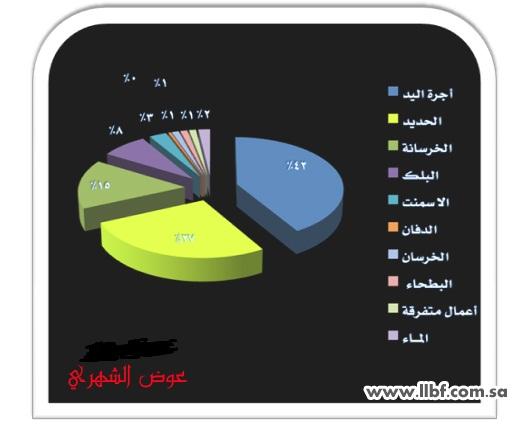 اتوقع الحديد يأتي بالمركز الاول بهد المصنعيه شغل اليد بعده الخرسانه بعد ذلك البلك